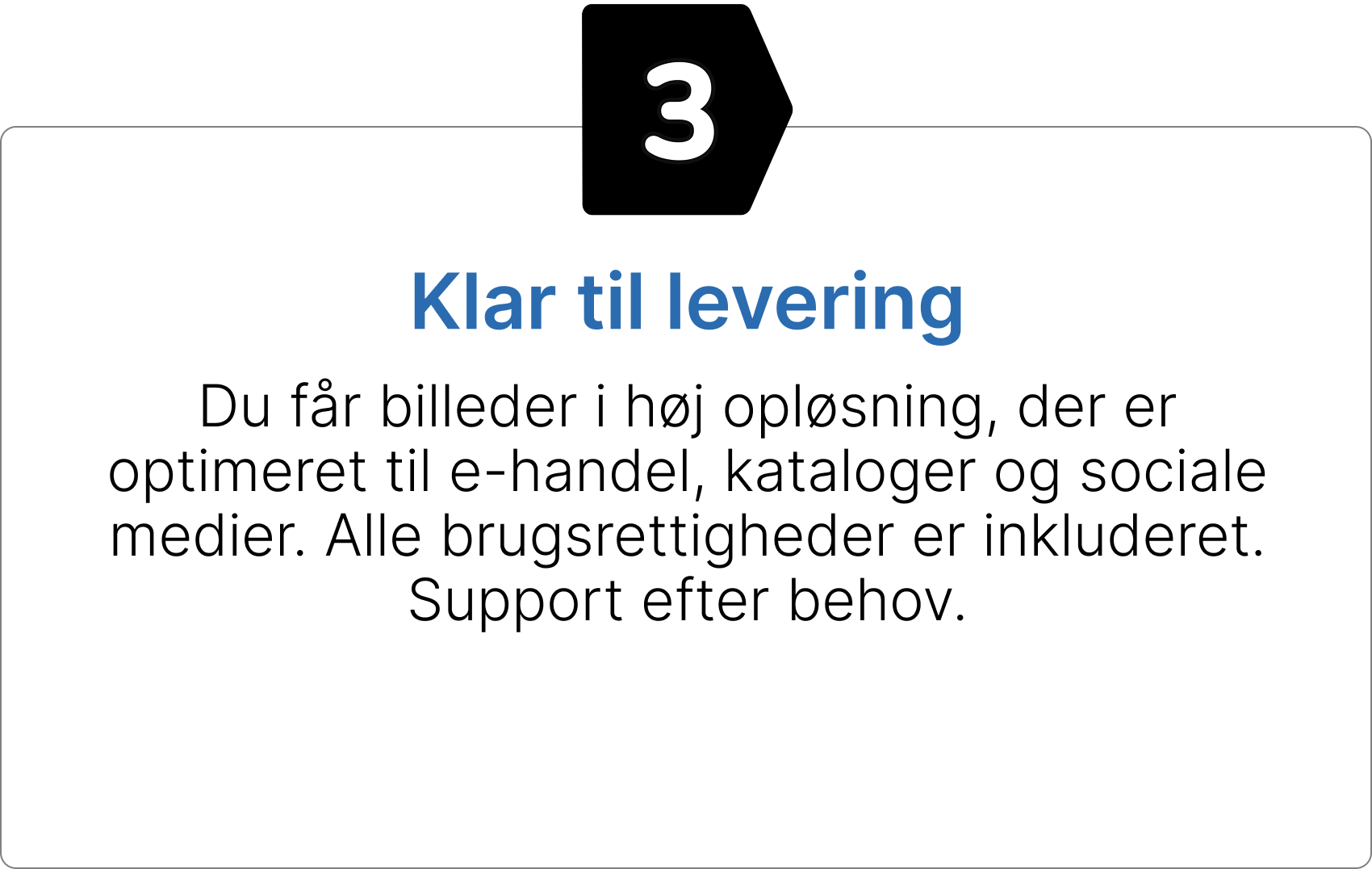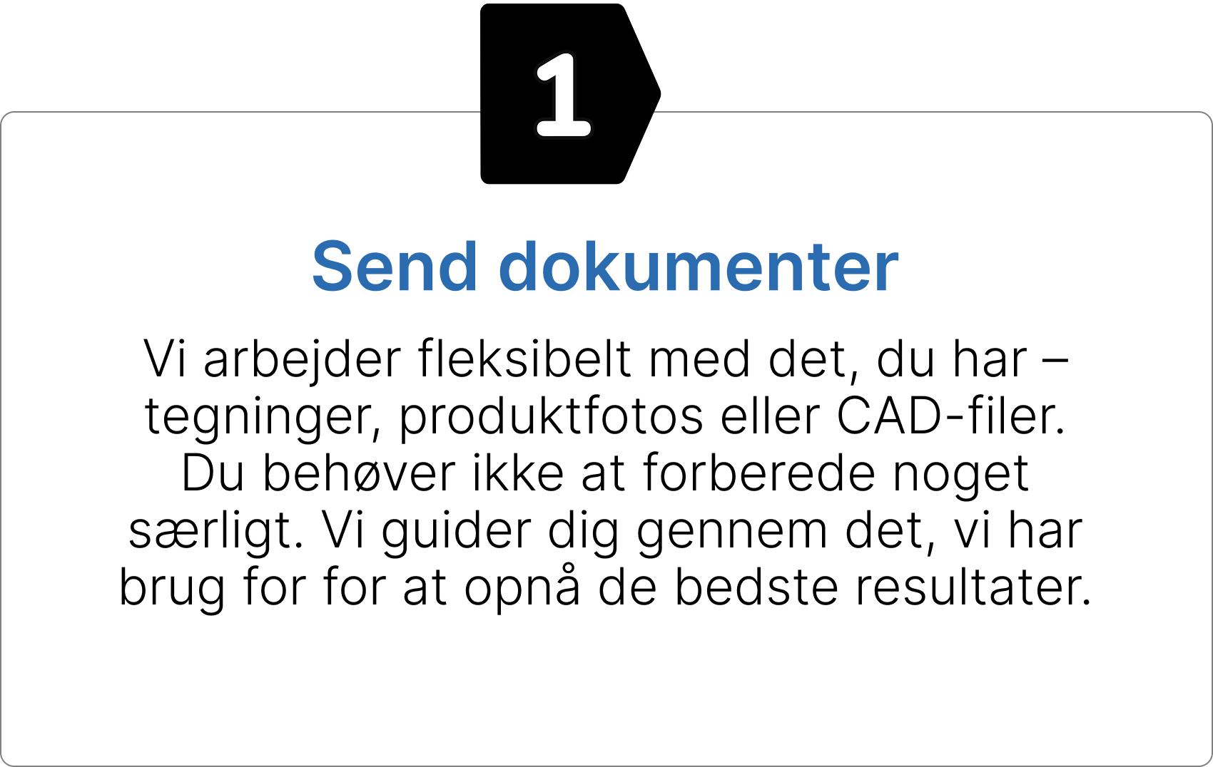 Vi hjælper dig både når du mangler 3D-data, og når du allerede har modeller klar. Du får færdige, ensartede produktbilleder, der kan genbruges i e-handel, kataloger og kampagner.