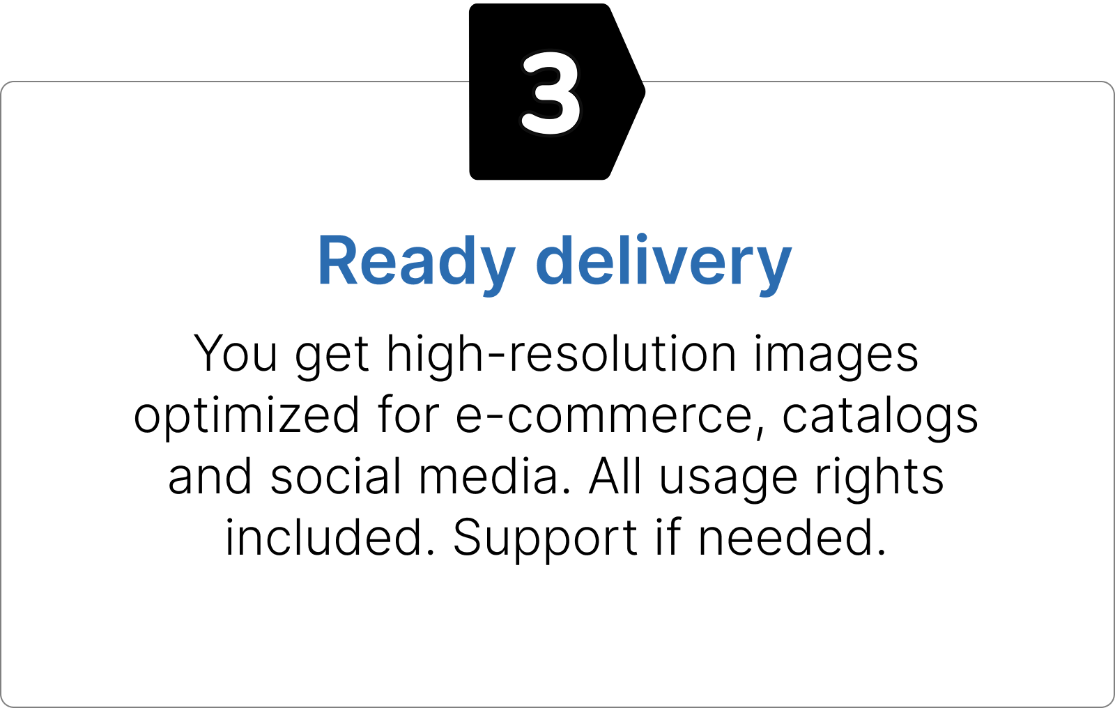 We help you both when you lack 3D data and when you already have models ready. You get ready-made, consistent product images that can be reused in e-commerce, catalogs and campaigns.